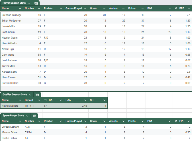 Talladega Knights Final Regular Season Stats – updated March 3rd 2025
